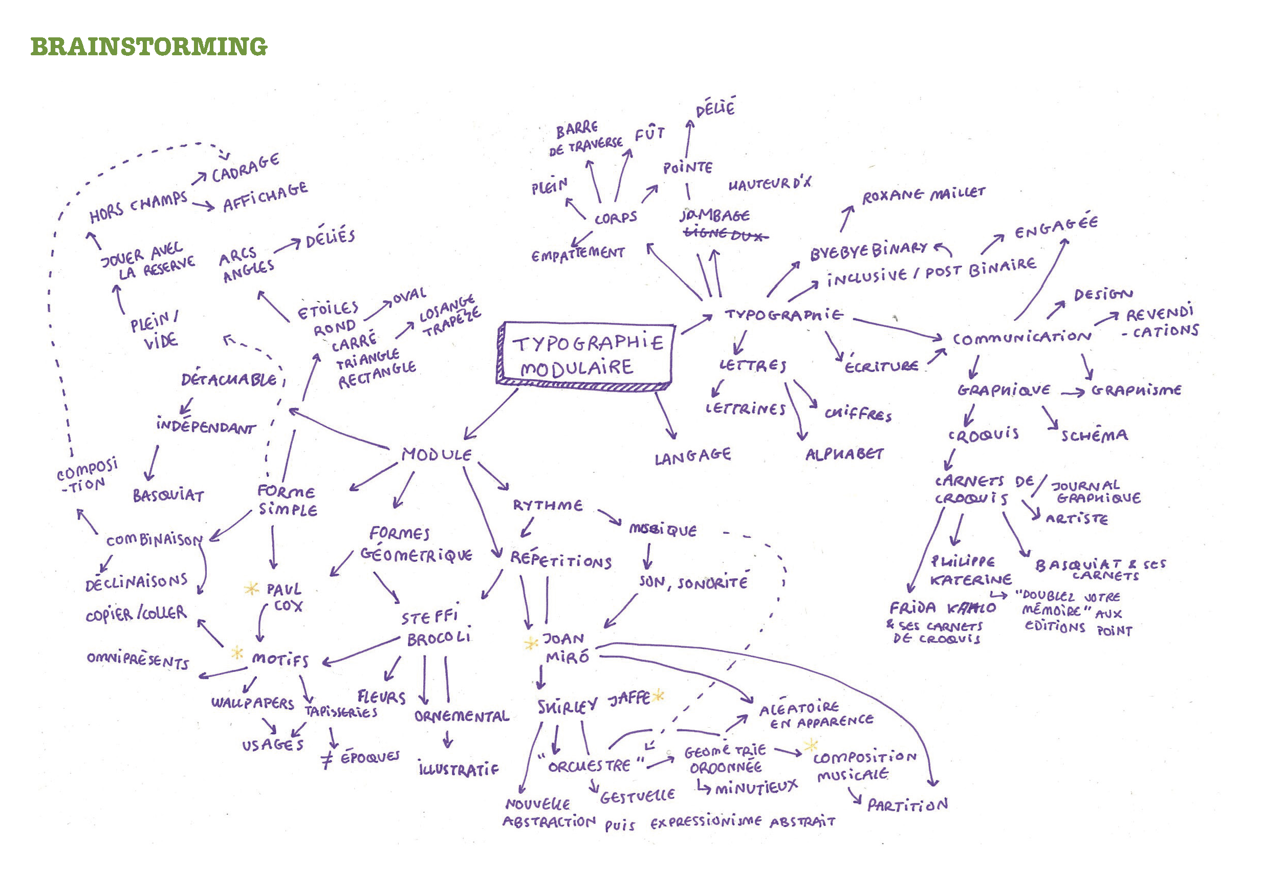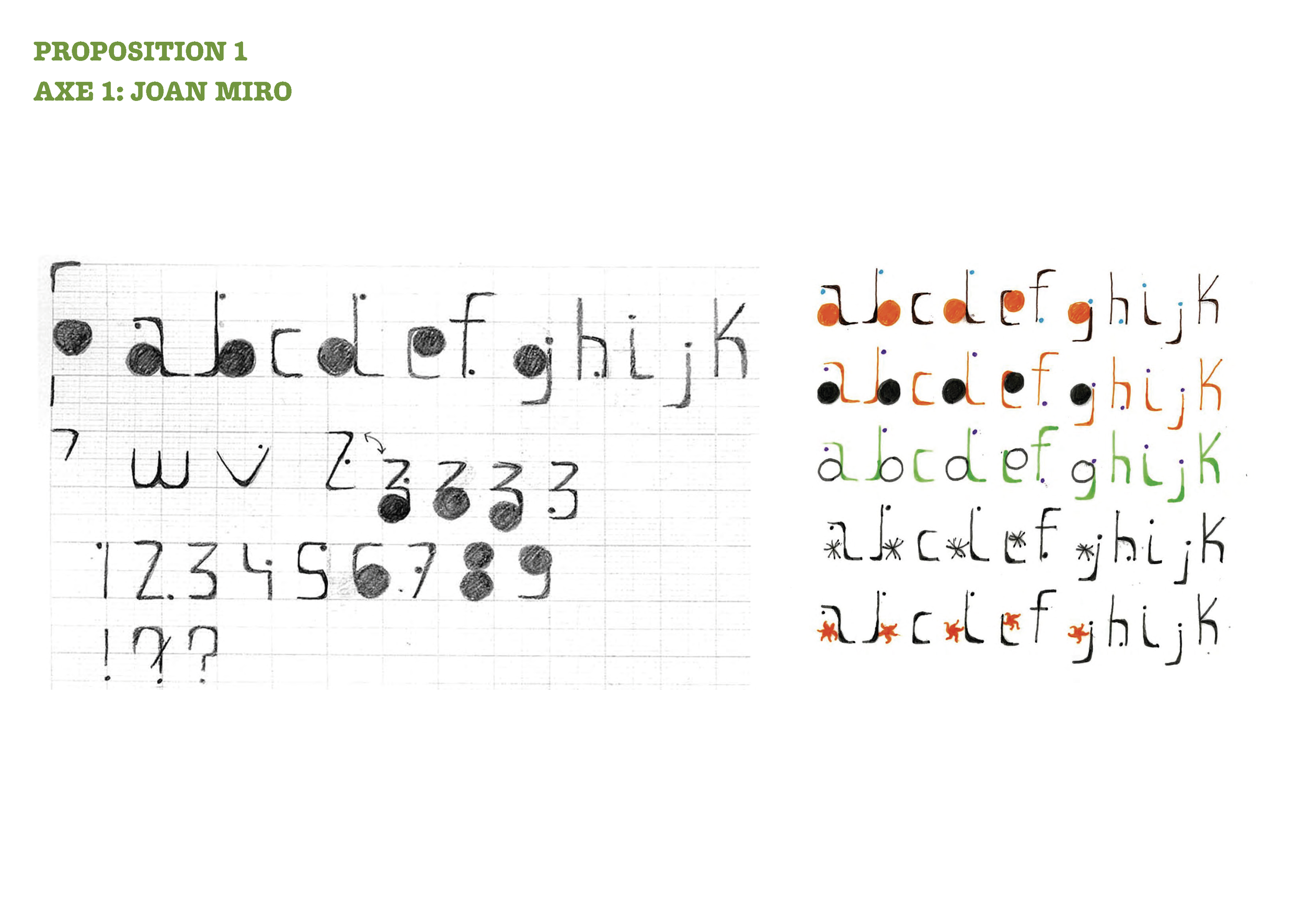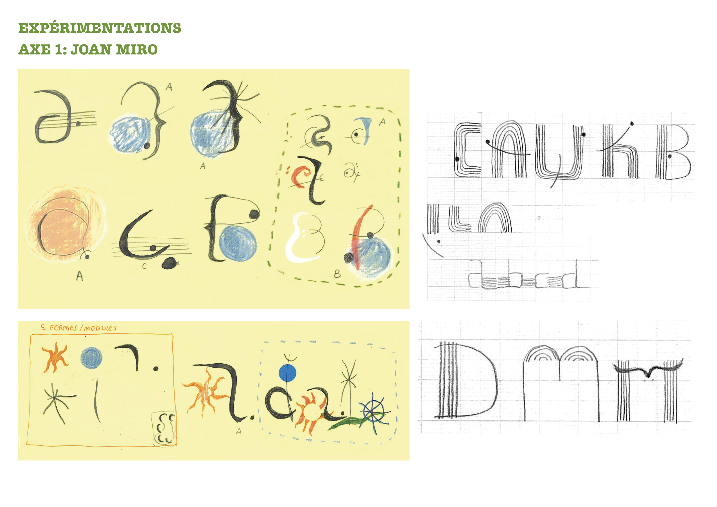de la typographie modulaire. Inspiration : Joan Miró, Paul Cox